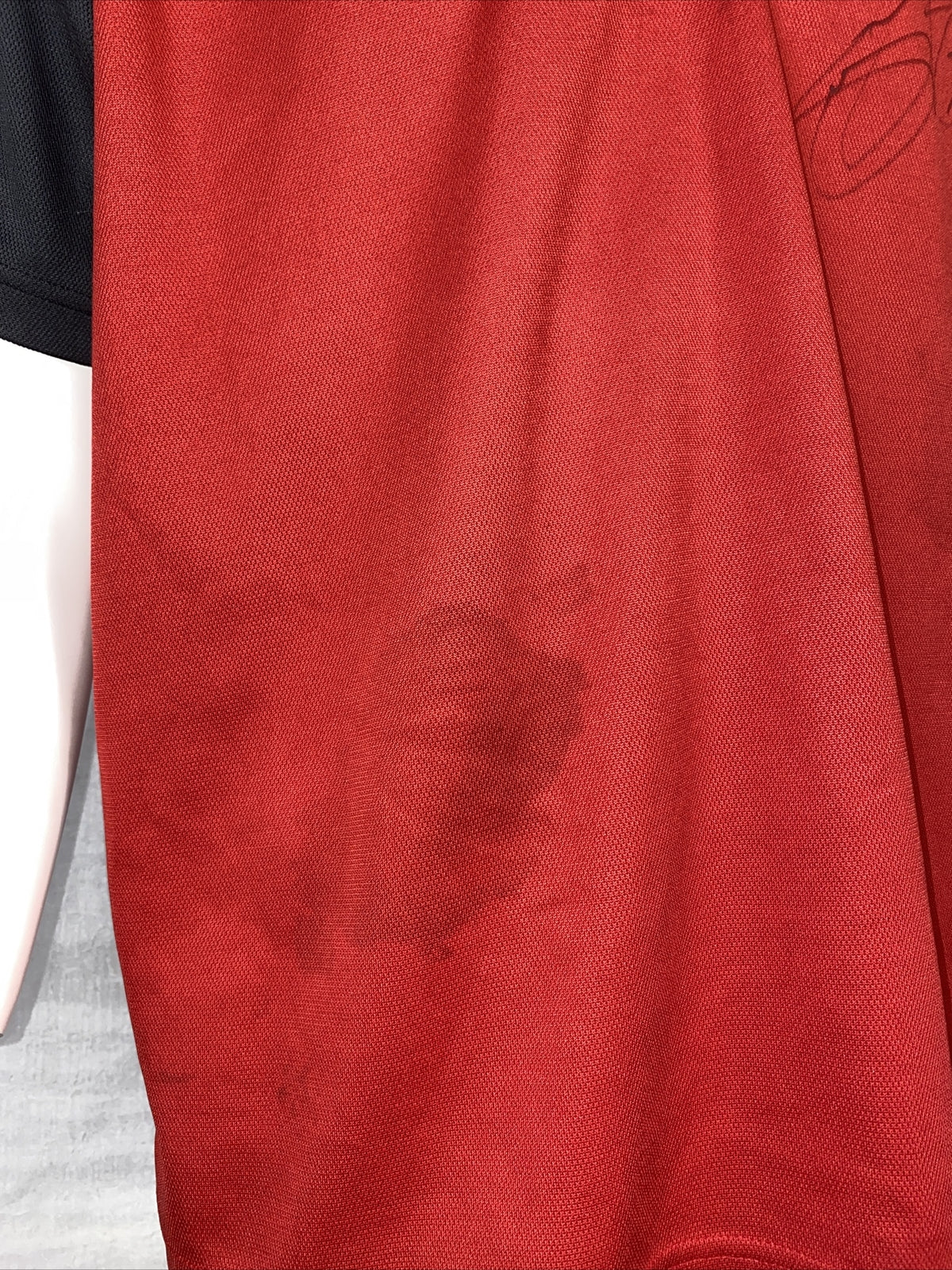 The shirt is Pre Owned, please be aware there will be general wear and tear possibly including some fraying on the most moving to the neck, armpit areas and other areas.